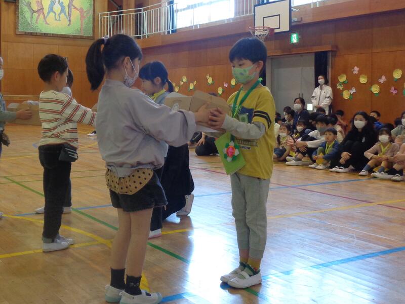 1年生は,入学時からお世話になった6年生に「大好き!」を伝えます。