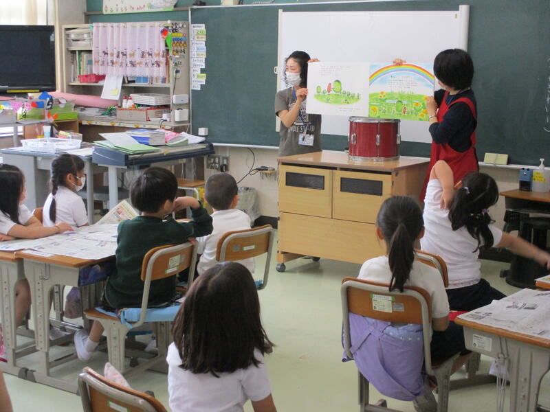 本のページをめくりながら,挿絵を見せながら,表紙の絵を上手に活用しながら…