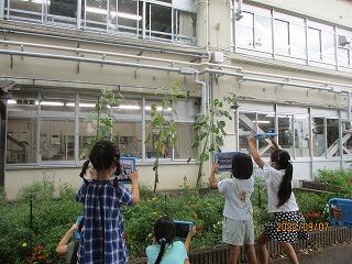 生活科の学習では,「夏の終わりの自然を見つけよう」と校庭で植物や虫などの取材をしました。