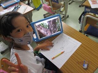 かつては,探検バッグに観察用紙をはさみ,外で実物を見ながら観察・記録をしていました。低学年ですと,観察カードが風で飛ばされたりぐちゃぐちゃになったり・・・なかなか観察に集中できなかったのですが,iPadを活用することで自分の目でも,大きな画像でも確認でき,観察記録もとても詳しく書くことができるようになりました。