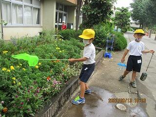 八小の校地には,大きな木や草むら,花壇があり,虫がたくさんいます。