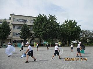 3・4年生は,運動会の団体種目で「台風の目」をします。