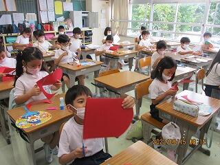 各教室には応援団が,作り方を教えに来てくれました。1年生も2年生も上手に作れていましたよ♬