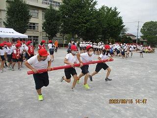 今年の運動会のスローガンは,「心をひとつに,勝利へ向かって飛びたとう!」です。