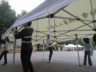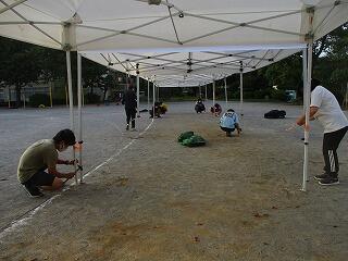 運動会後の後片づけでは,テントの解体作業を保護者の皆さまに手伝っていただけると助かります。どうぞよろしくお願いいたします。