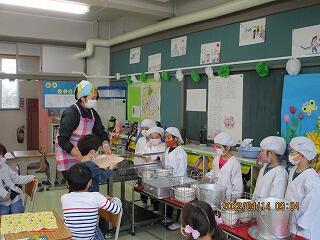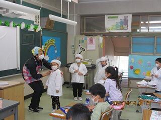 今日の1年生のお勉強の中心は,給食の練習です。給食の練習?!