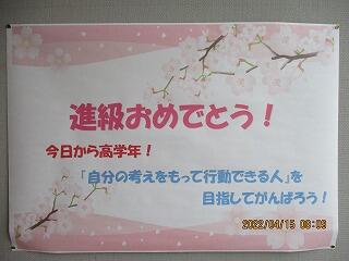 みんな頑張っていますね。新年度3週目,そろそろ疲れも出てくる頃です。ゴールデンウィークまで,あと少し。自分のペースでがんばっていきましょうね。