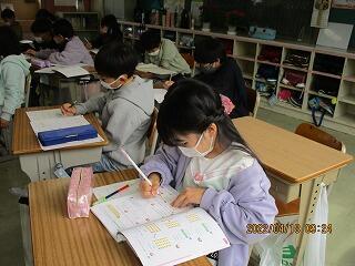 3年生は算数の学習に真剣に取り組んでいました。計算方法について,自分の考えを書いています。