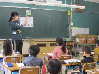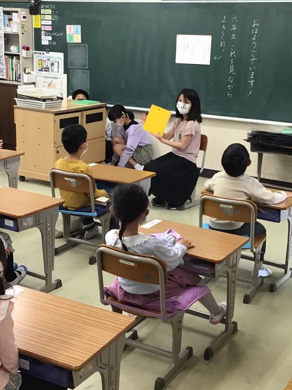 1年生もしっかり学習していました。国語の教科書を開いて,「あ」のつく言葉集めをしているクラス。ひらがなの学習をしているクラス。外で遊具の使い方を学習しているクラス。みんな大切なお勉強です。