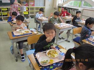 給食当番の支度や,配膳は練習の成果が発揮されとてもスムーズでした。さらに感心したのは,黙食ができることです。皆で黙って食べるというのは,ちょっと寂しい光景ではありますが,安全のために今は我慢です。