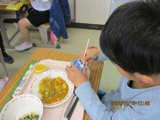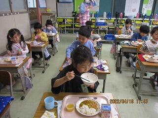 そして,1年生は今日から給食が始まりました。給食第1日目のメニューはもちろんカレーライスです!
