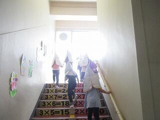 各学年の廊下や階段には,それぞれの学年の先生たちからのメッセージが貼られています。