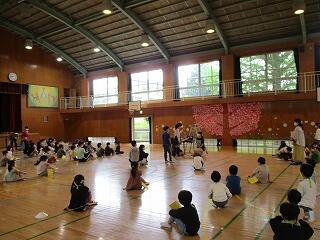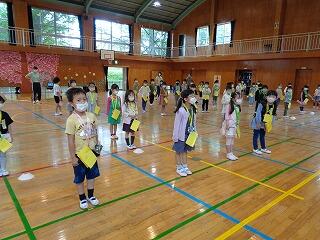 2年ぶりに1年生全員が体育館に集まって「迎える会」を実施できました。