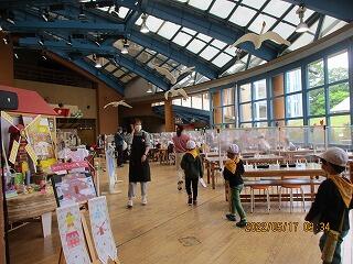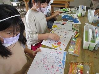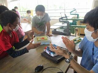 2年生は,夏休みに作った作品を先生が紹介したり,みんなで見合ったりしていました。