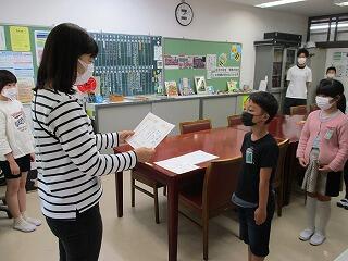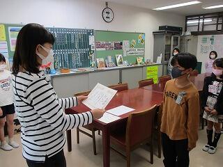今日,校長室に3人のお客様がきました。4年生の女の子が3人です。