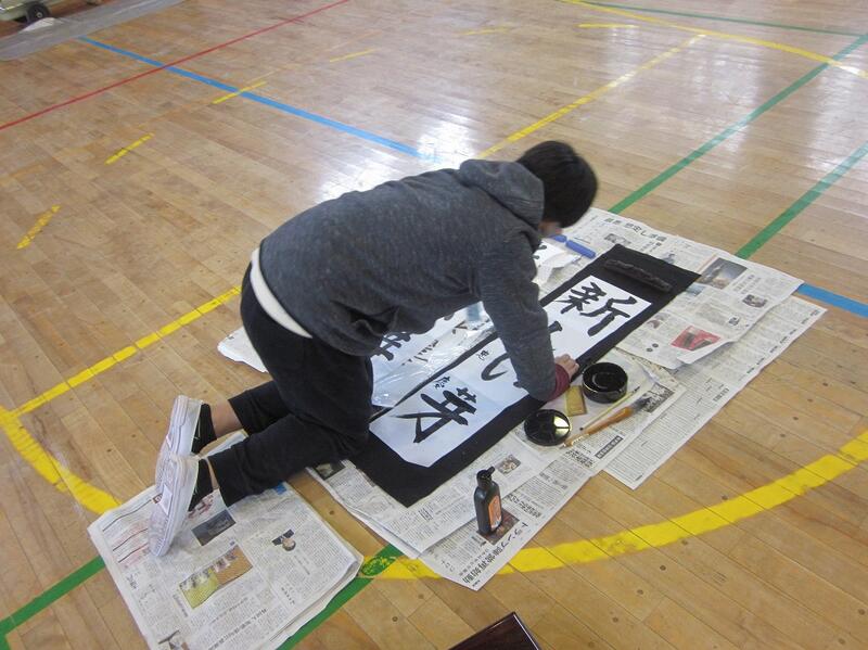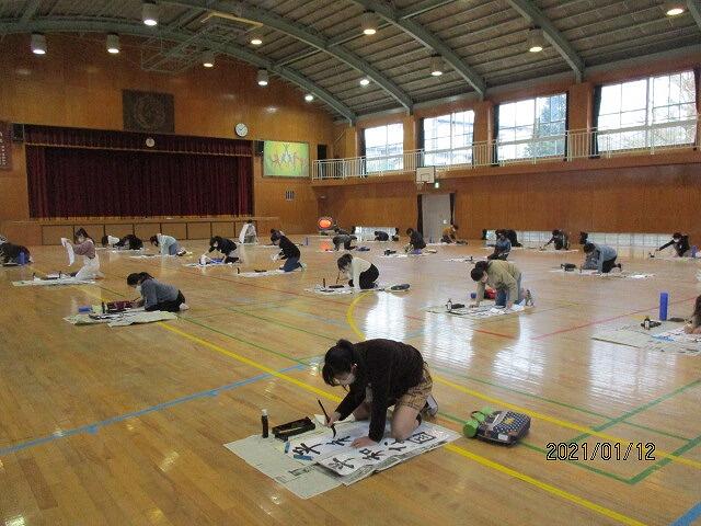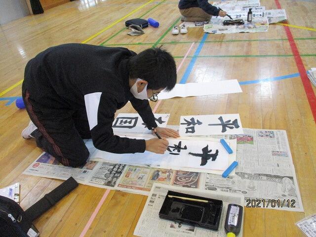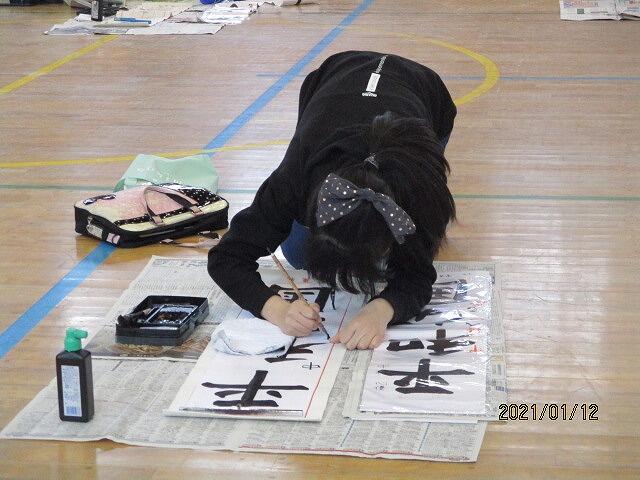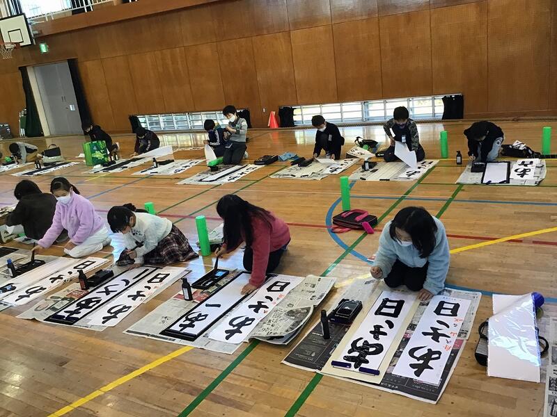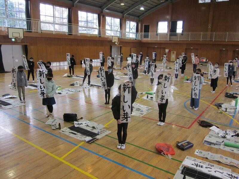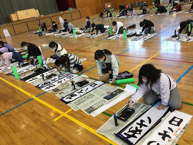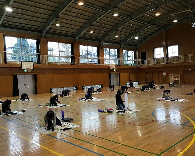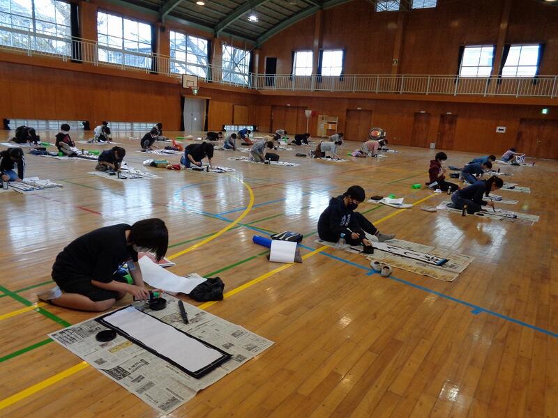 1月12日に,1クラスずつ体育館で書き初めを行いました。