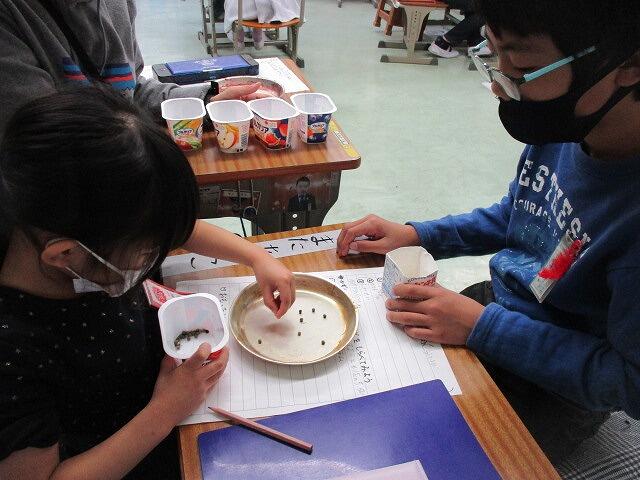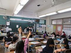 1月末から,4年生は理科室で毎週実験を行っています。本来であれば,班で準備をして実験を行います。コロナ禍もあるため,対面での実験は避け,学級で実験計画等を立て,理科室では,教師が実験を行い,実験が終わると,教室に帰ってからノートにまとめて全体で話し合っています。城石先生が準備,後片付けを率先してやってくださいます。