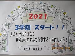 3学期に入り,コロナ感染を考慮して密にならないように,クラスを2つに分け,2時間続きで書き初め大会が行われました。