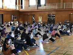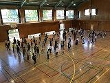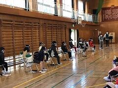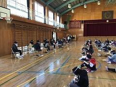 今日は体育館で,密を避け,間を開けて全員が立候補者の話に耳を傾けました。