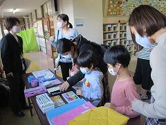 5,6年生がハンカチを取りこんで、アイロンがけをしてくれました。