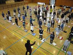 感染症対策のため,前後左右の距離をとり,マスクをしたまま歌いました。
