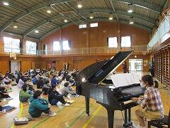 今日は,体育館に学年全員集まって,音楽専科の指導を受けました。