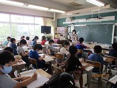 2年生は,教室で音楽です。鍵盤ハーモニカも対策を講じて解禁です。飛沫防止のため,机の上に各自タオルを敷いて,その上で鍵盤ハーモニカを演奏します。やはり,全員で一斉には演奏せず,1列ごとに交代で演奏していました。