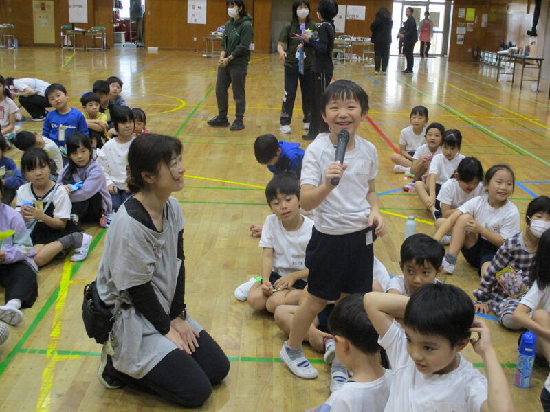 1年生ながら,マイクをもって,しっかりとレクを進行することができました。