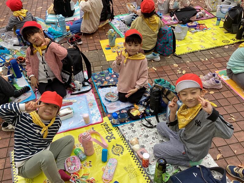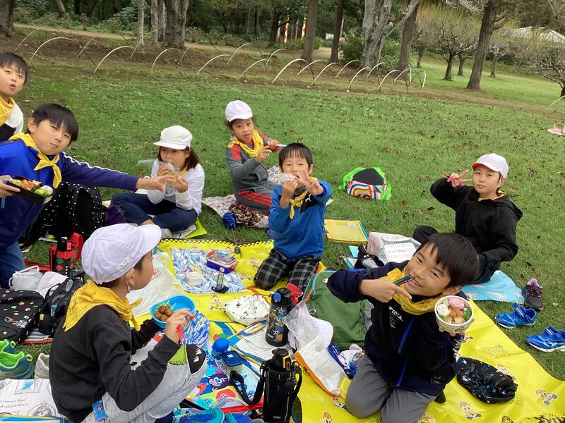 お昼はお家の方が作ってくれたおいしいお弁当を,口いっぱいにほおばっていました。