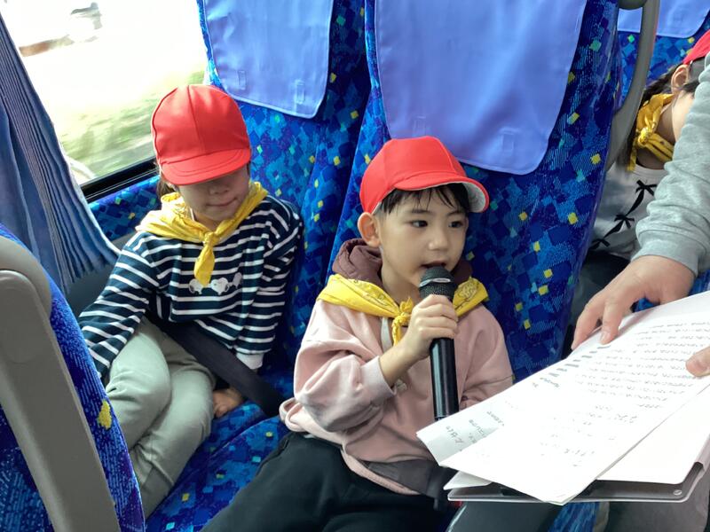 バスが国道に入るやいなや,係の子どもたちによるバスレクが始まりました。