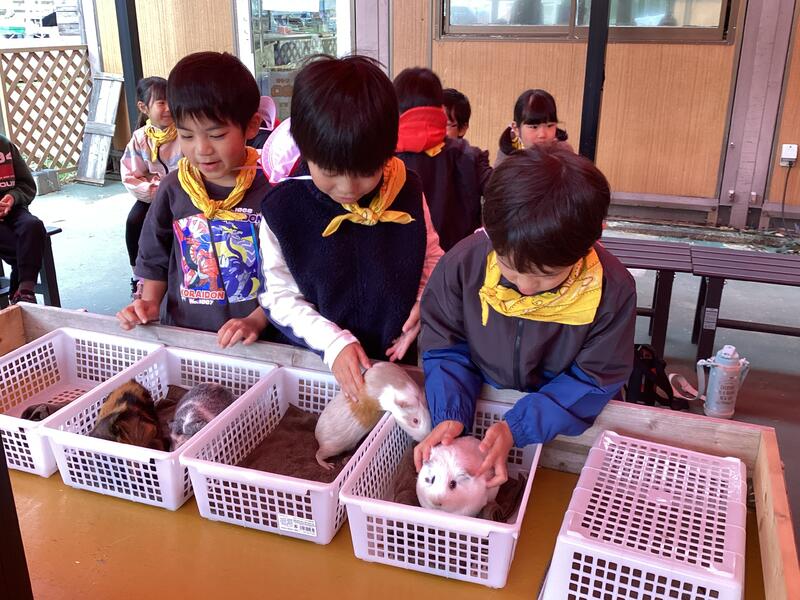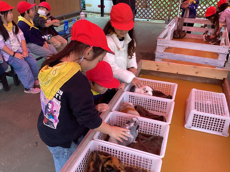 続いては,モルモットとウサギたちを直接触れることのできる「ふれあい体験」です。