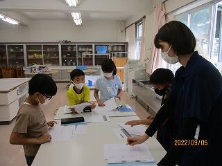 2年生は,夏休みに作った作品を先生が紹介したり,みんなで見合ったりしていました。