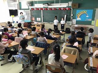 今日から,教育実習生の臼杵さんと早川さんが先生になるための実習をします。2年生と6年生のクラスで主に実習をしますのでよろしくお願いします。