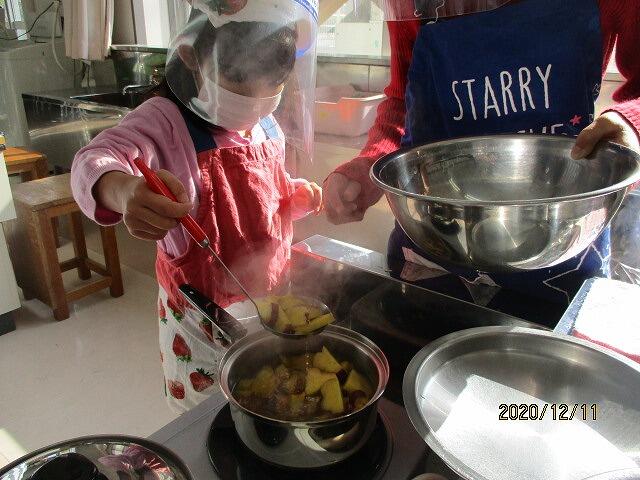 かぼちゃがかたかったり、さつまいもがぼこぼこしていて皮がむけなかったりしましたが、とても楽しく活動できました。