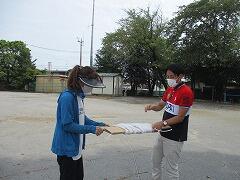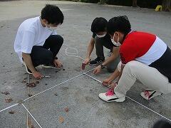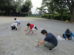 校庭のコースロープをきれいに張り替える作業です。