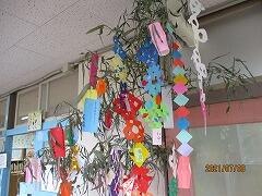 さっそく1年生,そして2年生とひまわり学級の子どもたちが願い事を書いた短冊や折り紙などで飾り付けをしました。