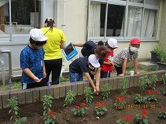 昨年は,一人で種まきをしたのですが,今年はひまわり学級の子どもたちに手伝ってもらい大助かりです。