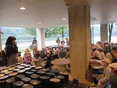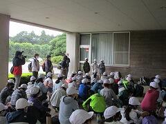手賀の丘少年自然の家に到着。開校式です。今月の歌「Wishu」の合唱が素晴らしかったです。