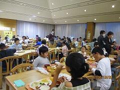 自然御家の食堂で早めの夕食をいただき,最後の活動はキャンドルファイヤー。