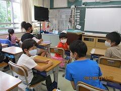 自己紹介をしたり,今度一緒に遊ぶ「遊び」を考えたり,実際に遊びをスタートさせたり・・・どのグループも上級生が中心となって楽しそうに活動しました。ちゃんと大声を出さない,お互い接触しない遊びを工夫していましたよ。