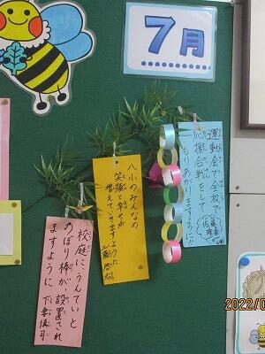 校長先生からは,七夕にちなんで「願いごとは何度も口に出して言うと叶う」というお話がありました。