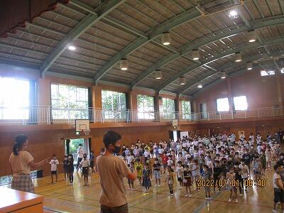 6月に2・4・6年生が集まりましたので,これで全学年が体育館での全校朝会を体験することができました。