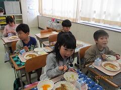 初めてなのに,給食当番さん,とっても上手です。自分の席に運ぶ時もゆっくり静かに・・・・。