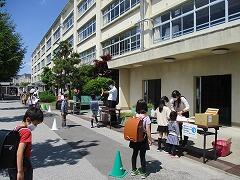 2~6年生は,「3密」ならないように,場所や時間を工夫して,各担任の先生から新しい教材をもらったり,家でがんばった課題を提出したりしました。