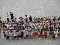 最初に並んだ1年生,2年生。6年生が並び終えるまで,ちゃんと列を崩さずに待っていてくれました。えらいなぁ。