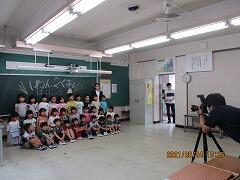 昨年は,航空写真を撮りましたが,今日は,校舎4階から子どもたち全員の顔が見える全校写真と,クラスごとの写真撮影です。