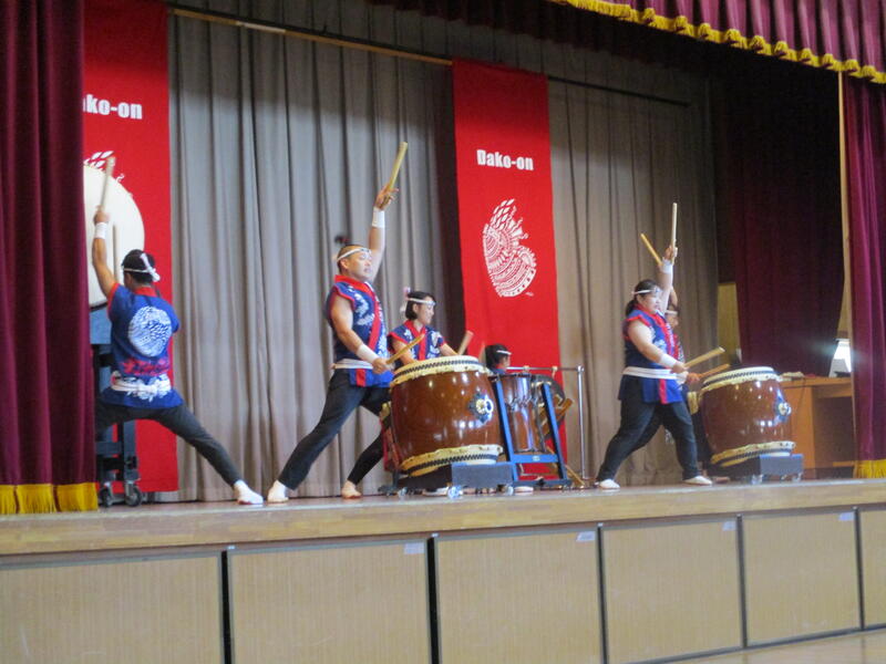 日本の伝統芸能である和太鼓の演奏を鑑賞しました。