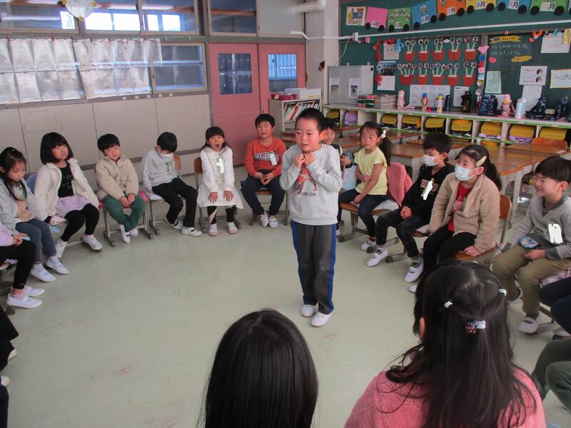1年生の教室では,転入してきた新しいお友達を歓迎するお楽しみレクが開かれていました。