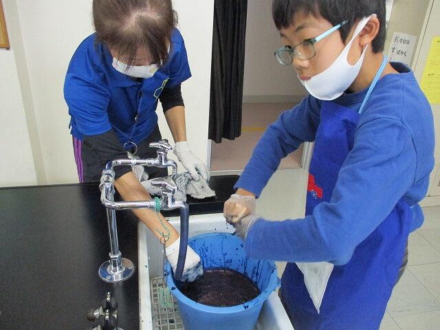藍色になったあとは、色とめ液に入れて、かわかして完成です。