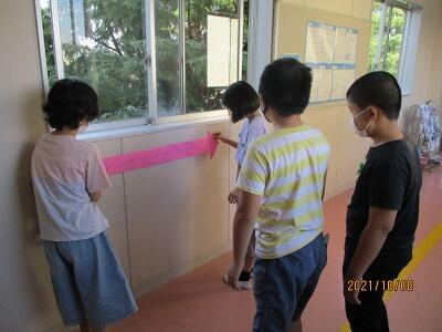 お友達同士で矢印の端と端に立ってみると実際の距離もわかるかも・・・!